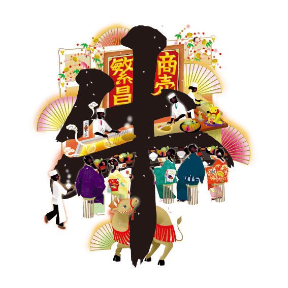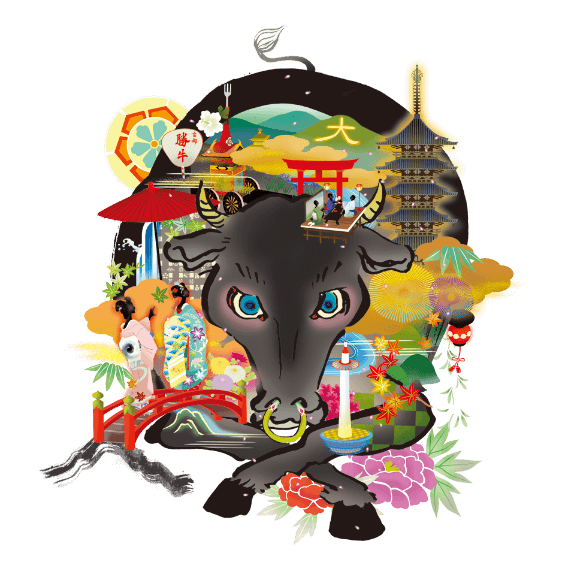 I received a suggestion that “I want to spread the wonderful culture of Kyoto to the world through the GYUKATSU Kyoto Katsugyu brand,” and I wrote this new article. By writing the word “Katsugyu” and the picture of a cow in traditional ink, and mixing it with a richly colored picture, the result is a picture that represents modern-day Kyoto, which is in the midst of tradition and innovation. I’m finishing it. Please pay attention to the stories scattered throughout, such as the culture and cityscape that you can only understand by living in Kyoto.